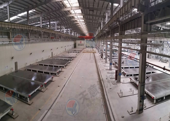 該生產(chǎn)線(xiàn)采用移動(dòng)模臺(tái)加中央擺渡車(chē)的形式來(lái)生產(chǎn)構(gòu)件,比起固定模臺(tái)來(lái)更加靈活,效率更高,澆筑振搗完的的構(gòu)件由中央擺渡車(chē)將模臺(tái)送入養(yǎng)護(hù)窯養(yǎng)護(hù),布局合理,工藝先進(jìn),可同時(shí)生產(chǎn)多種混凝土預(yù)制構(gòu)件。